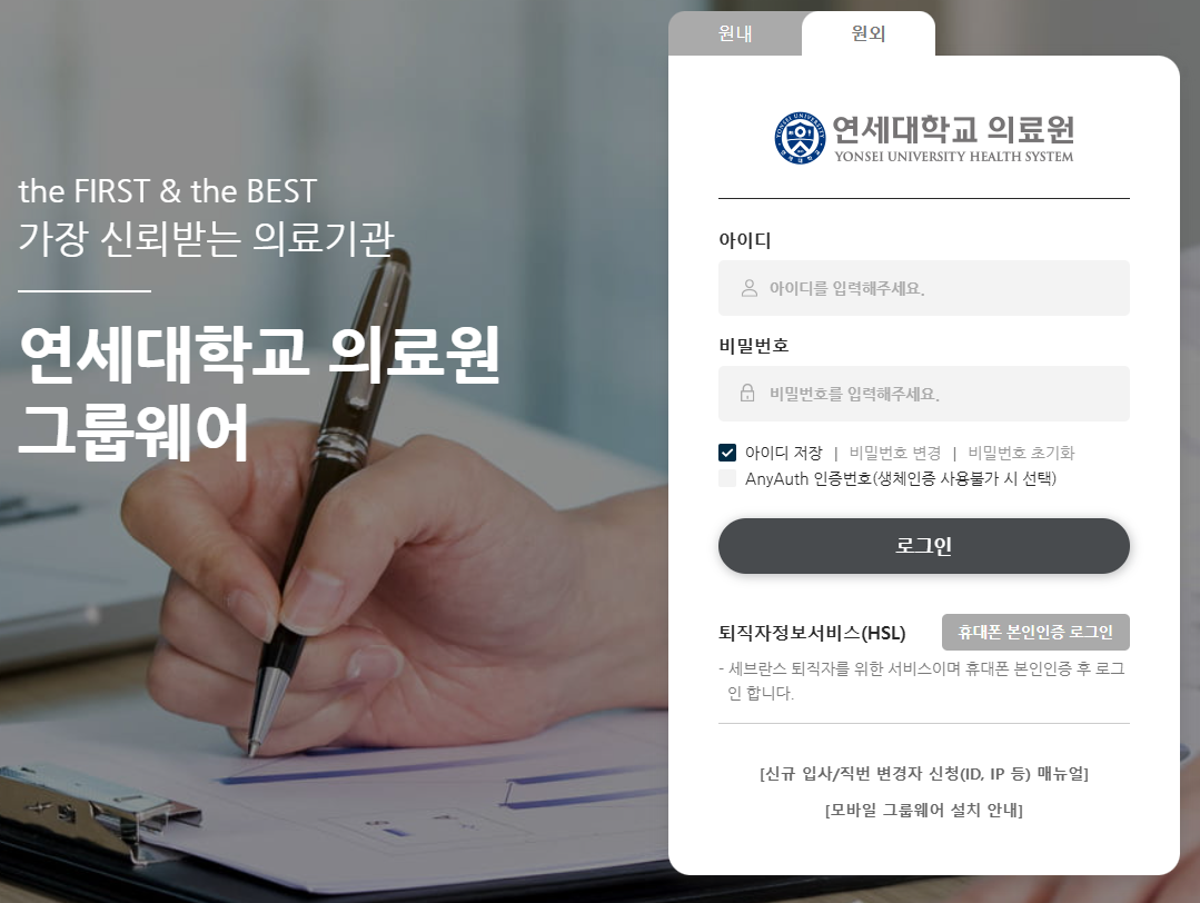 연세대학교 의료원 그룹웨어 GW01 바로가기 (yuhs.ac)